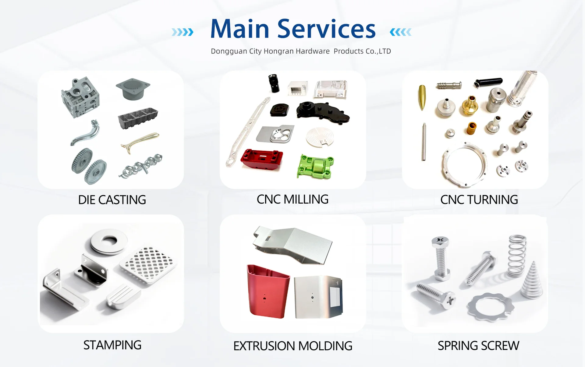 Dongguan Hongran Hardware Products Co., Ltd. Productos principales:Fabricación de diseño de moldes de fundición a presión, piezas de estampado, piezas de torneado CNC, piezas de fundición a presión, procesamiento y fabricación de varias piezas de hardware